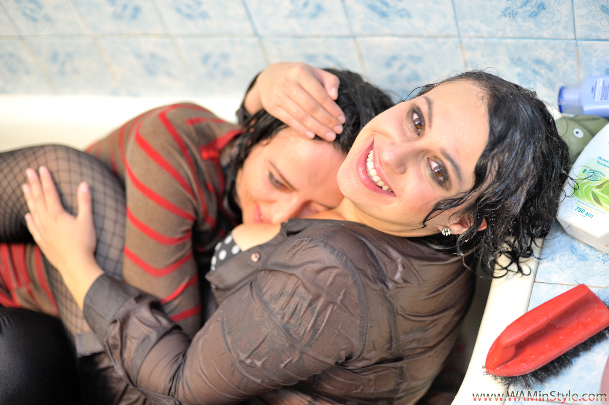 Моя одежда медленно пропитывалась водой и нежно обтягивала мою кожу. Это было совершенно новое прикосновение, которое было мне очень приятно. Я смотрела на Таню и себя и понимала, что в мокрых вещах мы действительно выглядим очень красиво и сексуально – даже свободные вещи, как моя блуза, стали облегающими и тяжелыми от воды, обрисовывая контуры фигуры и влажно блестя. Нам было очень весело в тот вечер – мы пили шампанское и ели торт прямо в ванной, как будто на вечеринке в бассейне, поливали друг друга водой из опустевшей бутылки шампанского. Я праздновала свой первый ветлук-опыт и наслаждалась им. Мне стало интересно, что будет, если я разуюсь. Когда я это сделала, Таня начала поливать меня водой из моего же сапога, и это было так весело! И почему я не попробовала этого раньше?