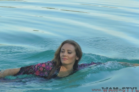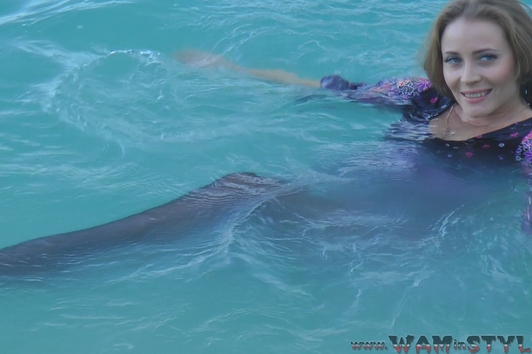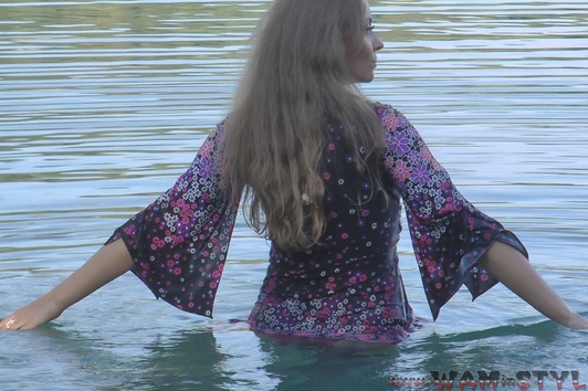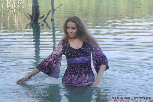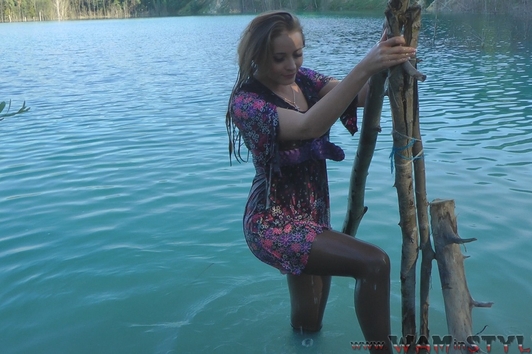 Beautiful girl in a beautiful dress with black stockings, beautiful scenery, a lake with crystal clear water ... Of course Bonya goes to swim, fully clothed of course. Enjoy a wonderful wetlook!
