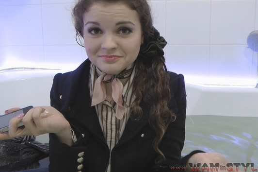 You can not imagine how it is wonderful to come home from the cold outside and immediately to get and lie in a warm bath, and not just so, but fully clothed and shod! And here is Vanessa, fully clothes, in coat, high heel boots, trousers, taking a bath, not being confused, but on the contrary - getting unearthly pleasure).