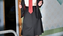 Greta decided to take a bath fully clothed. She went into the tub full of hot water, wearing tight blue jeans, light jacket and patent leather boots with high heels. At the end she took off her jacket and shoes showing us a wet white T-shirt and light nylon socks.