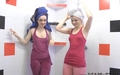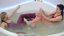 Friends Irma and Vanessa went to the bathroom to drink tea, chat, eat chocolate ... Girls hurried to run a bath and immersed there fully clothed, in their soft home suits, flats with socks. Without thinking girlfriend decided to wash hair each other with shampoo and conditioner. After the bathroom girls turned on shower to rinse, then they wiped without removing clothes.