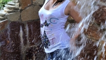 Diana in jeans, sneakers and a white t-shirt bathes in a hot tub, dances sexy dance, showing us a great wet-t-shirt. Then a hot girl goes under a cold waterfall where she continues her wet dance.