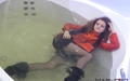 Vanessa in a beautiful black dress, stockings, boots with heels and a smart orange coat takes a shower. But the water from the shower is not enough for a girl and she immersed in jaccuzi fully clothed, relaxed in water, and at the end she took off her coat and showed off in a nice wet dress and pantyhose.