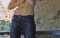 Diana in blue jeans bathes in a hot tub.