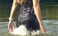 Elena is dancing on the river bank in a black short dress and pantyhose. Girl gets hot under the summer sun in black clothes and she continues her dancing slowly sinking into the water, fully dressed. Her wet look dancing looks even sexier than dry.