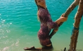 Real lady is always and everywhere a lady: during dinner, during work in the office, and ... of course during swimming on the beach. Who said that it's not a suit for swimming? Nika proves you the opposite, she swims in whatever she likes, undressed: in a skirt suit, high heel shoes and sexy stockings, and she looks in wet clothes even more magnificent than in dry.