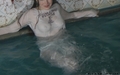 Irma bathes in jacuzzi with her doll.