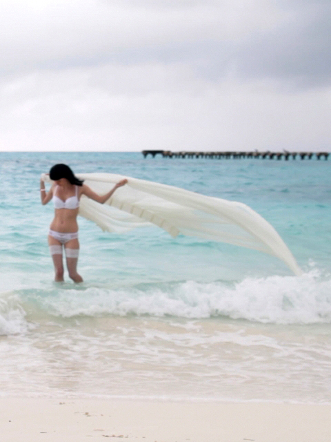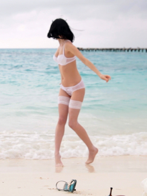 Моя одежда промокла, облигая мою фигуру, и тонкии белые чулочки стали почти незаметными на моём теле. Я легла на песок, наслаждаясь волнами которые нежно касались моего тела. Мне казалось что я в раю.