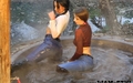 Hygge is something that fills your heart with comfort and your soul with joy. What can be more comforting and joyful for a wetlook lover than two stunning girls Elena and Camila in tops, jeans and high boots, all wet? Peaceful nature, warm steaming water, and two young beautiful bodies slowly dancing and getting wet - that's what wet hygge looks like!