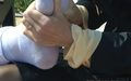 The girls were so glad to be wet. Water was dropping from the shiny black skirt of Nika and it looked so enchanting. Greta jumped with joy in her sneakers, splodging with water. Then the girls came to the no less pleasant part than bathing in clothes. They massaged each other's feet. What can be better than a beautiful girl, wet from head to toes, caresses your wet feet gently? They had two in one – the sensual pleasure of their feet being touched and the aesthetic pleasure looking at each other. They wanted to save that feeling and not to spoil it with footwear. So they went on without any, having their outdoors wetlook rest and feeling completely happy.