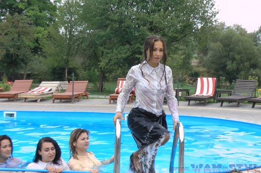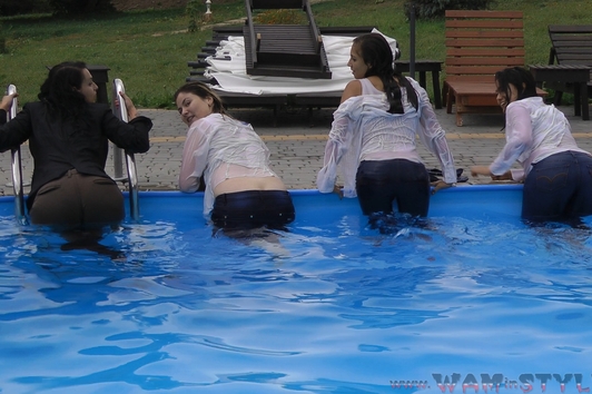 Then all the girls gathered in pool. They were jumping and having fun. All of them were happy to greet their mate, bathing in clothes, now being not only good friends but something more - a wetlook family.| My Cart | Items : 0 |