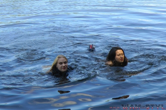 Kylie, the master of the party, was dressed in full-Levis look. Elena was the one who was in dress because she was a princess of that day. Even Tanya came to greet one of her beloved models. She said sincerely how she appreciated everything Elena did for wetlook from the name of entire Waminstyle crew. And of course, everyone brought a present for Elena and hid it in water.