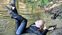 So what were the presents girls prepared? It was new clothes for Elena’s favorite fun – wetlook pleasures. And Tanya presented her a new phone from her and Oleg. The things got a little wet while waiting in water but the phone, fortunately, was OK. Elena was so glad to receive her presents that she immediately wanted to wear and try them in water. She looked so gorgeous in new jeans, blouse and high-heeled shoes, all wet from head to toes, shining with water and happiness. The last surprise she received was a jeans jacket that repeated the destiny of the other presents – it got soaked with water on Elena’s slim and beautiful body.
