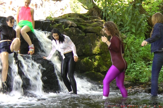 Their jeans, jackets, and shirts were fully soaked with water, embracing their young bodies so seductively. They were exploring wetlook and when they got used to the water they began to show themselves off and to play with their wet full-dressed bodies to demonstrate how sexy and gorgeous they felt. When the first task was finished, all of them slowly went out of the water, beautiful, all-wet, with the water pouring from their jeans clothes. The second task was the famous wet T-shirts contest. The girls changed their shirts on white T-shirts. Then Wanda told them to take off their bras in water. Perhaps it will be one of the sexiest things you’ll ever see in your life – beautiful girls in white outfit that became completely wet and transparent, showing their lingerie, and then their boobs with the nipples protrude in cold water. ..
