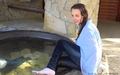 First Vanessa gets wet under cold jets of water. Her white shirt is so sheer, that she had to wear also pink not padded bra, which is very visible under wet shirt together with her blue shiny jeans. The water was so cold that she had to hurry to hot bowl to wait for other two girls.