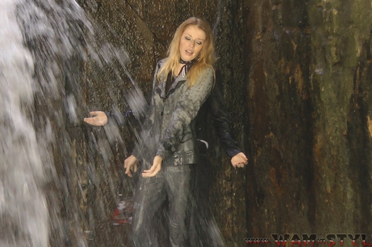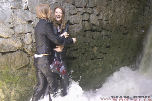 And now the girl are completely under water jets, soaking suits wet, the water spared nothing, even the hair, but this pleasure was worth of it, powerful jets and cool water did their work, girls are happy and full of joy, the fatigue of the day was washed away in the truest sense of the word). Adrenaline incomparable with anything, Nika and Natalie decided to get wet in this waterfall not once time again in their very different clothes.