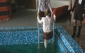 her to wear her heavy bag and sent her into swimming pool, fully clothed in uniform.
