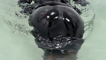 Elena decided to relax after office work in original way - to take a bath fully clothed, in her best business suit (jacket with a short skirt), in black tights and a classic high-heeled shoes. At the end she took off her jacket and skirt and showed us wet teddy and tights looking very erotic and sexy!