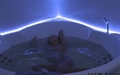 Vanessa in coat takes a bath.