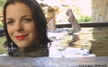 Diana in blue jeans bathes in a hot tub.