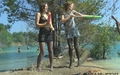 Girlfriends Elena and Nika played near the lake.