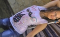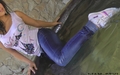 Diana in jeans, sneakers and a white t-shirt bathes in a hot tub, dances sexy dance, showing us a great wet-t-shirt. Then a hot girl goes under a cold waterfall where she continues her wet dance.