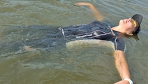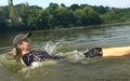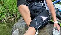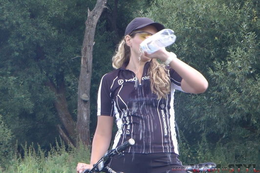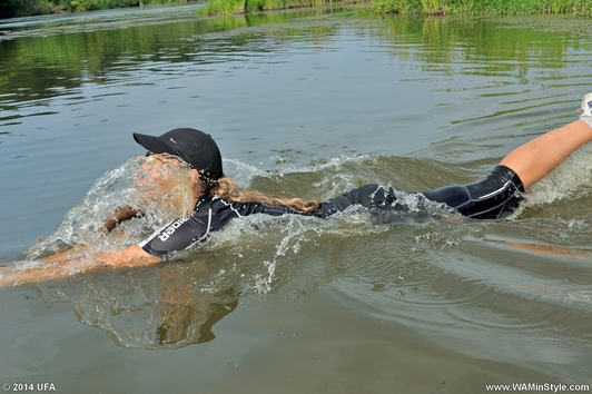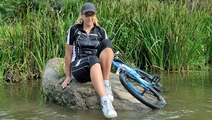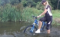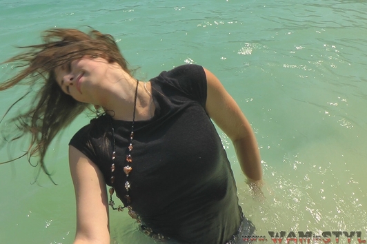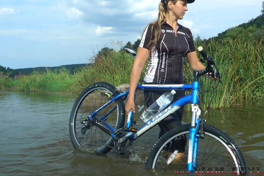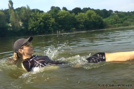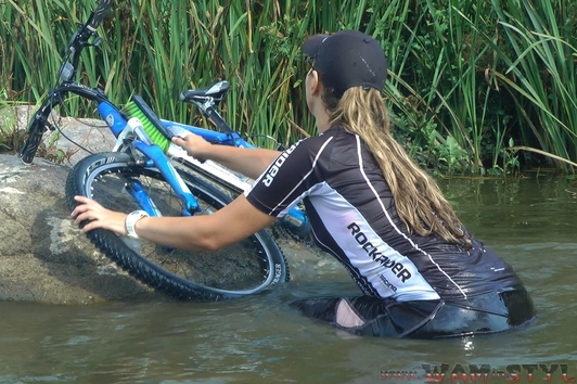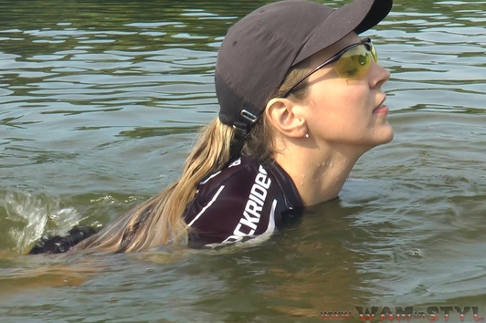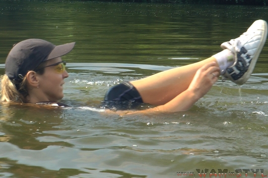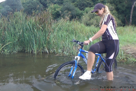 Varvara is very athletic girl. Cycling and swimming are favourite hobbies of the girl. It is summer heat, Varvara rode to the river bank. It was very hot, body sweat profusely under the fitting suit, swimsuit of course was at home, and she thought: why not to swim fully clothed? It's a go! Varvara went into the water even not taking off shoes and socks, there is a lot of mud silt in the river, and it was more convenient to go in sneakers. Finally girl bathed and washed her bike and got a lot of pleasure soaking and cooling off. On the way home clothes will as well dry and only wet socks in sneakers will remind about a nice time for a long).