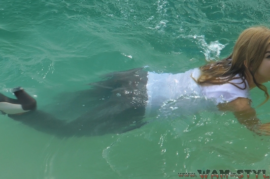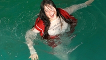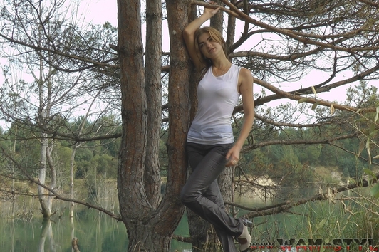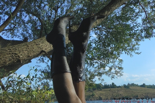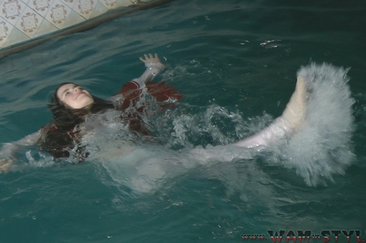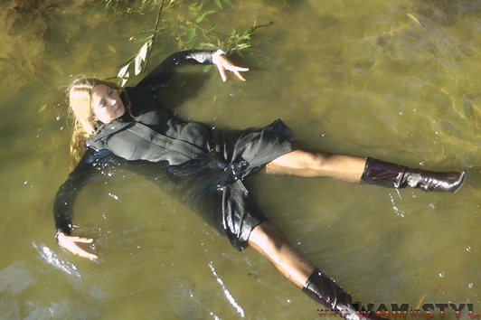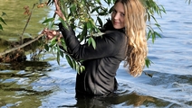 Varvara walked in the forest along the river bank and saw a beautiful tree hanging over the water. The girl decided to arrange a photo session on the tree, but she was unable to keep her balance and fell into the water. Boots and tights immediately soaked, but it put Varvara on her mettle and photo session turned into a real wetlook session, she has not regretted her coat and started swimming).